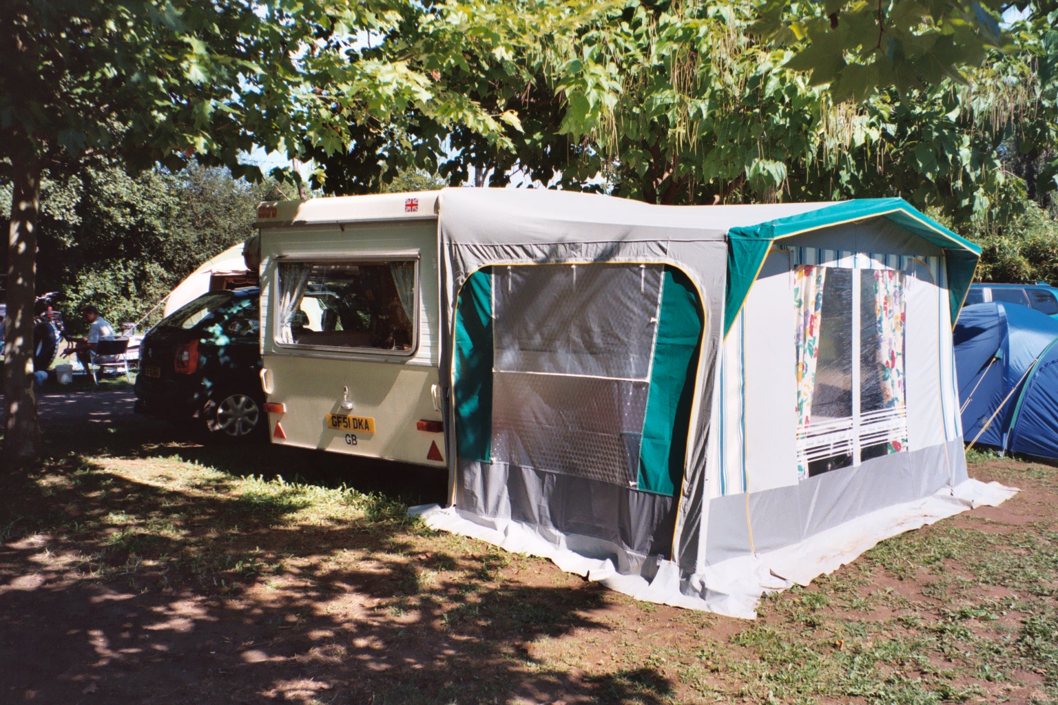 Our caravan and awning at the campsite which flooded when the circus came. .