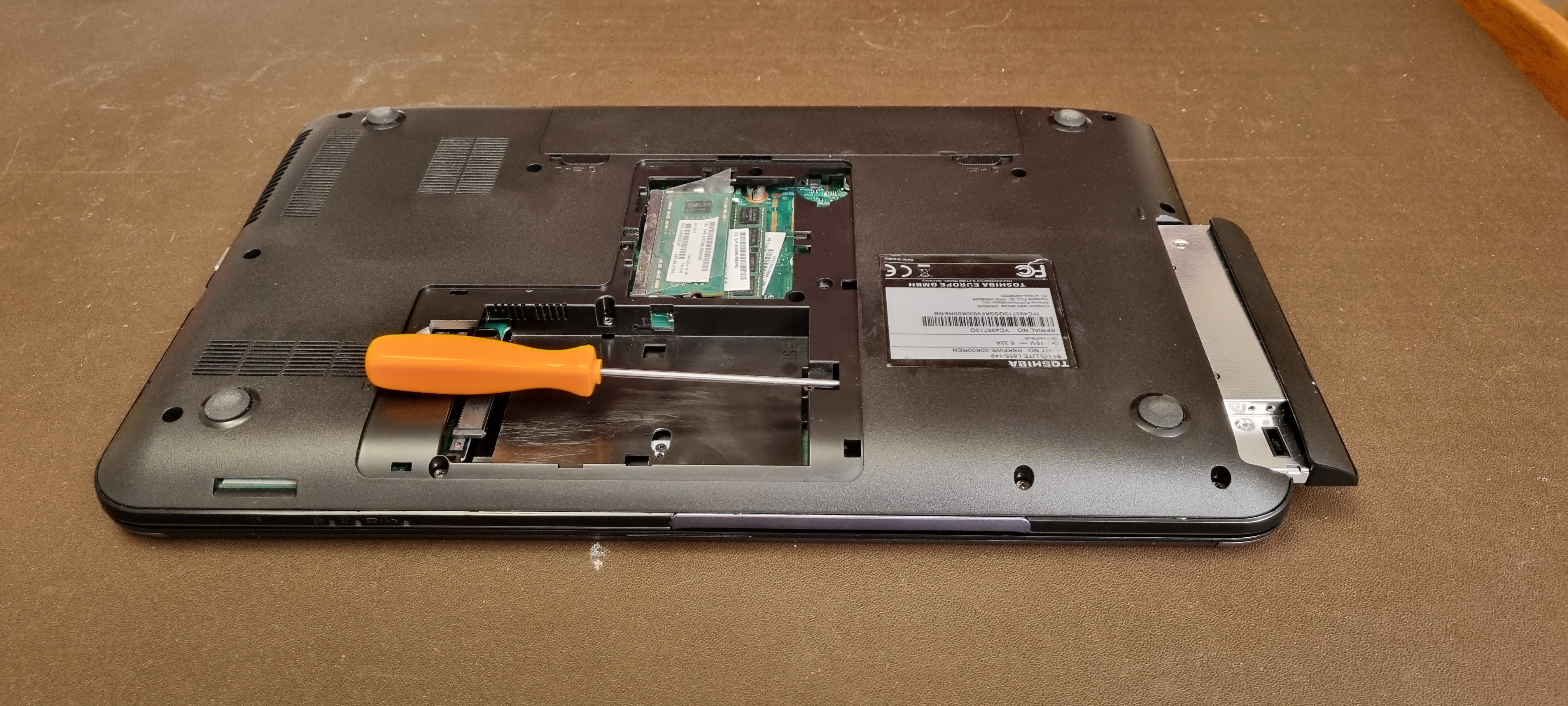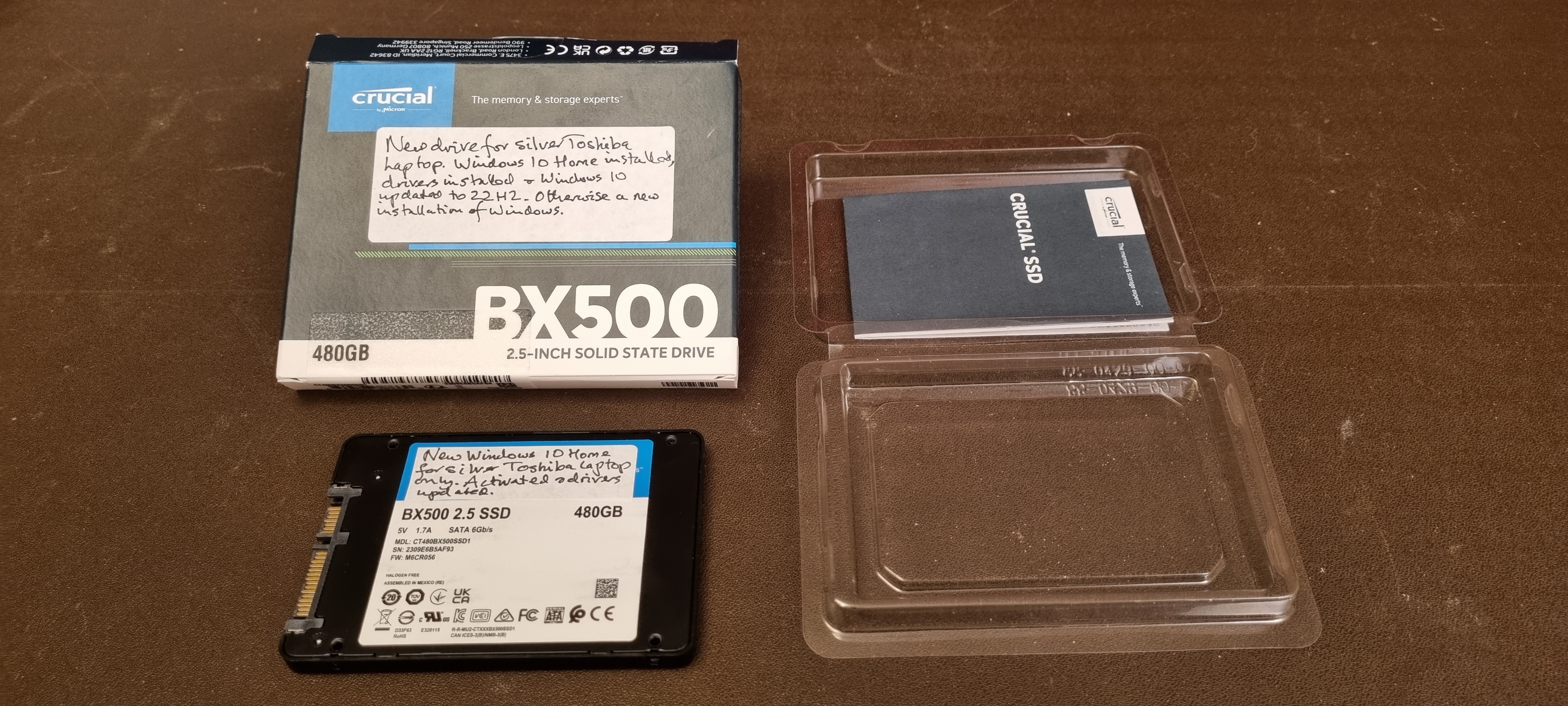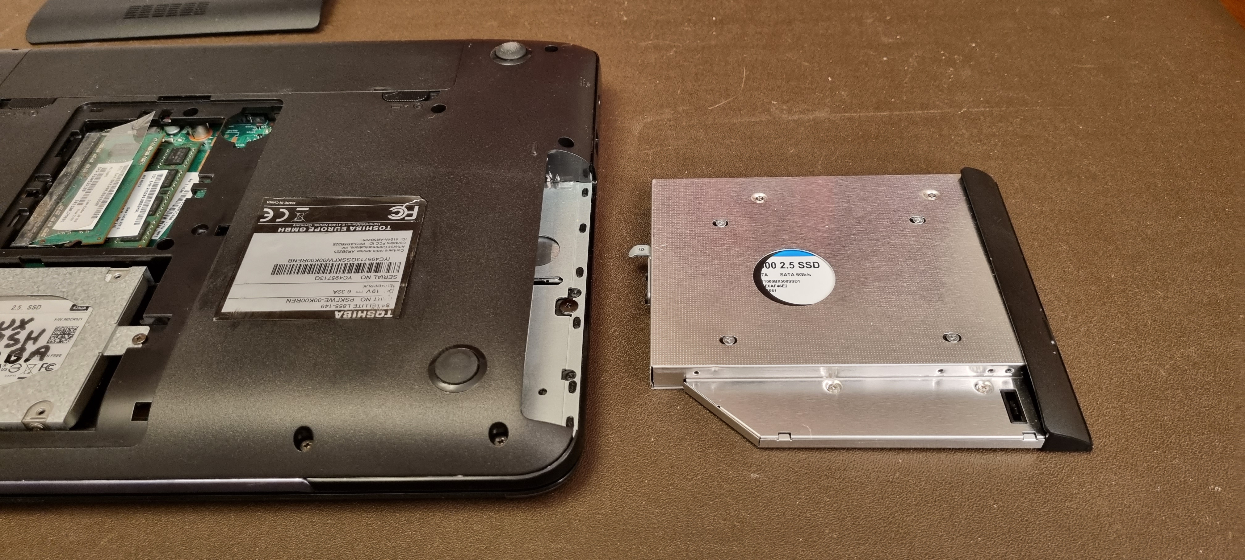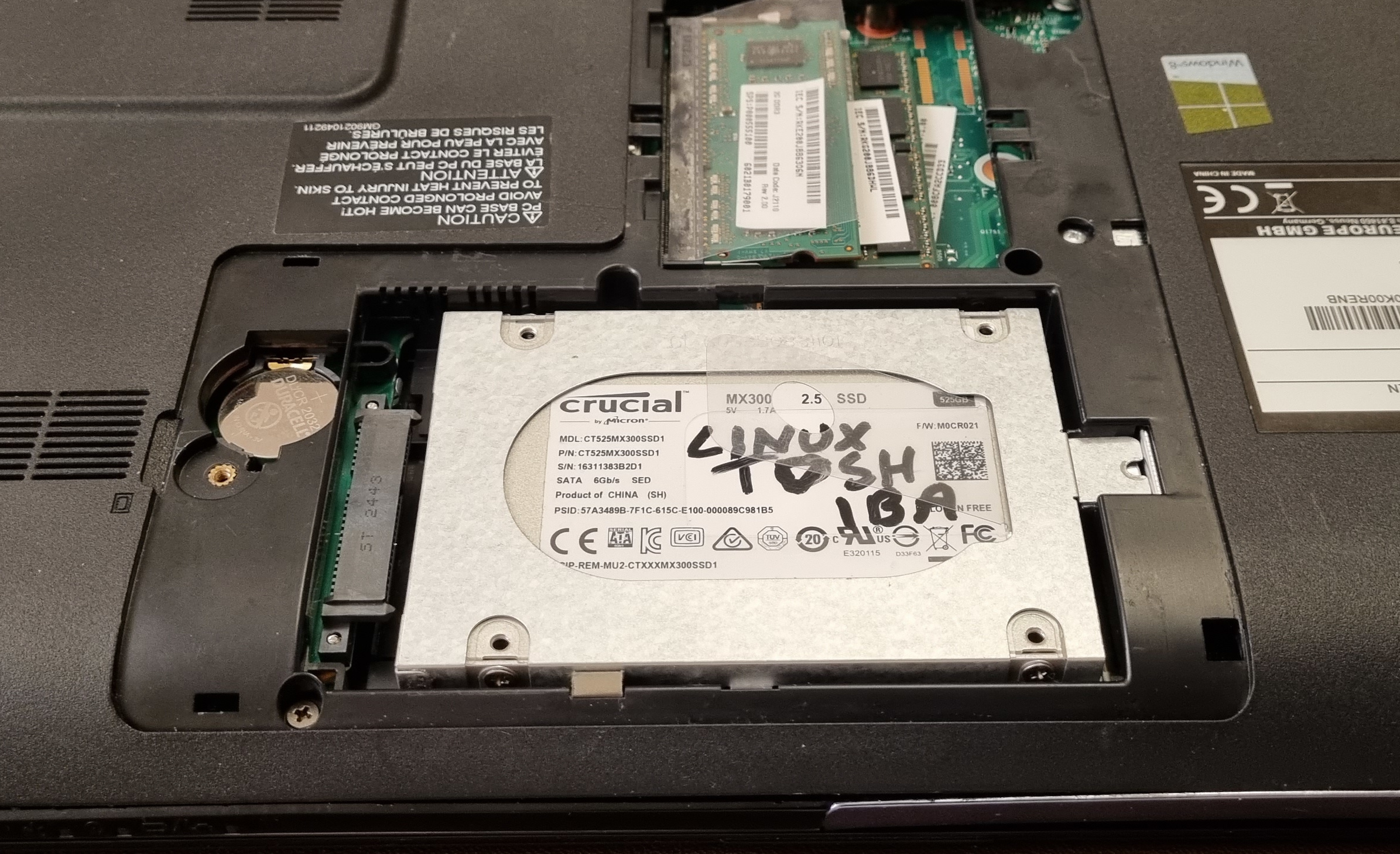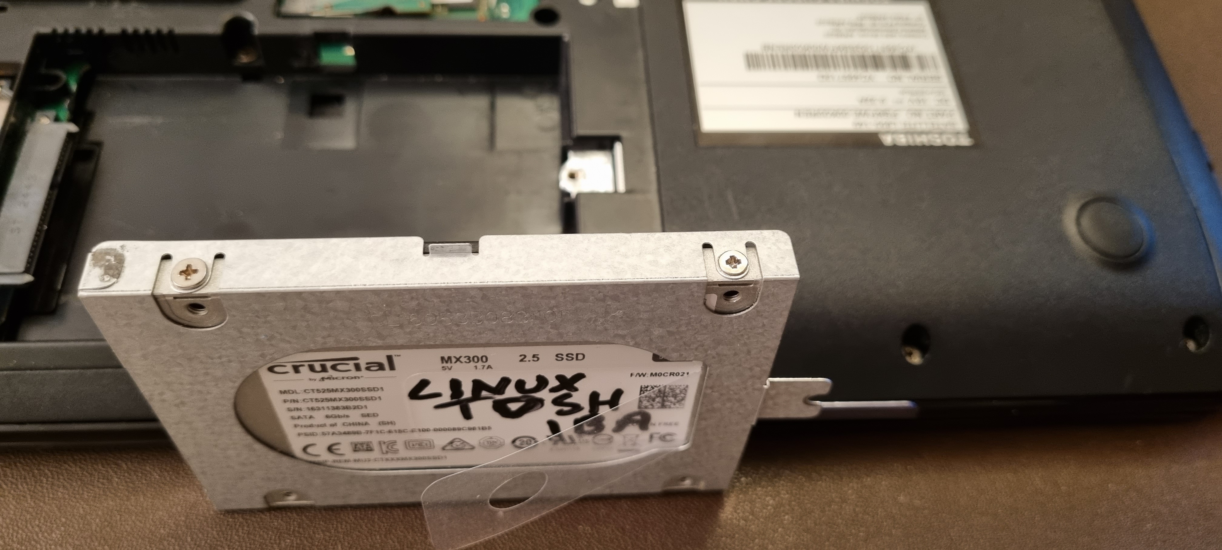 the new harddrive (SSD) in, ready to get rid of the computer.